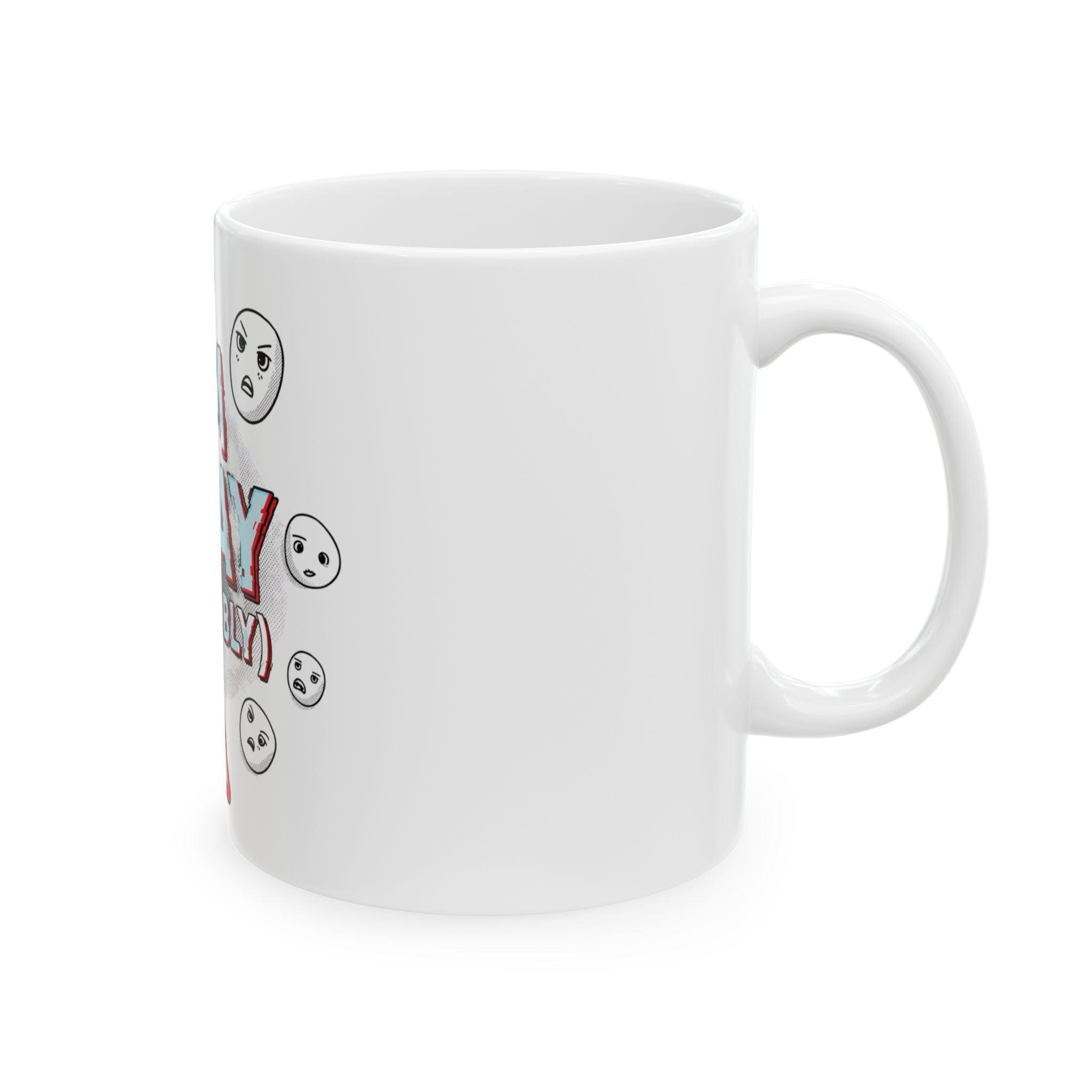Brighten your day with this vibrant ceramic mug, the perfect companion for your morning coffee or evening tea. The playful design featuring "I'M OKAY (PROBABLY)" adds a humorous touch that resonates with anyone facing life's ups and downs. Ideal for coffee lovers, tea enthusiasts, or anyone in need of a daily dose of laughter. This mug not only serves functional purposes but also creates a delightful atmosphere in your home or office. Great for gifting during holidays, birthdays, or just to celebrate ‘being okay’ in a quirky way. It makes a fantastic choice for those who appreciate unique and fun homeware, adding flair to any kitchen or workspace.