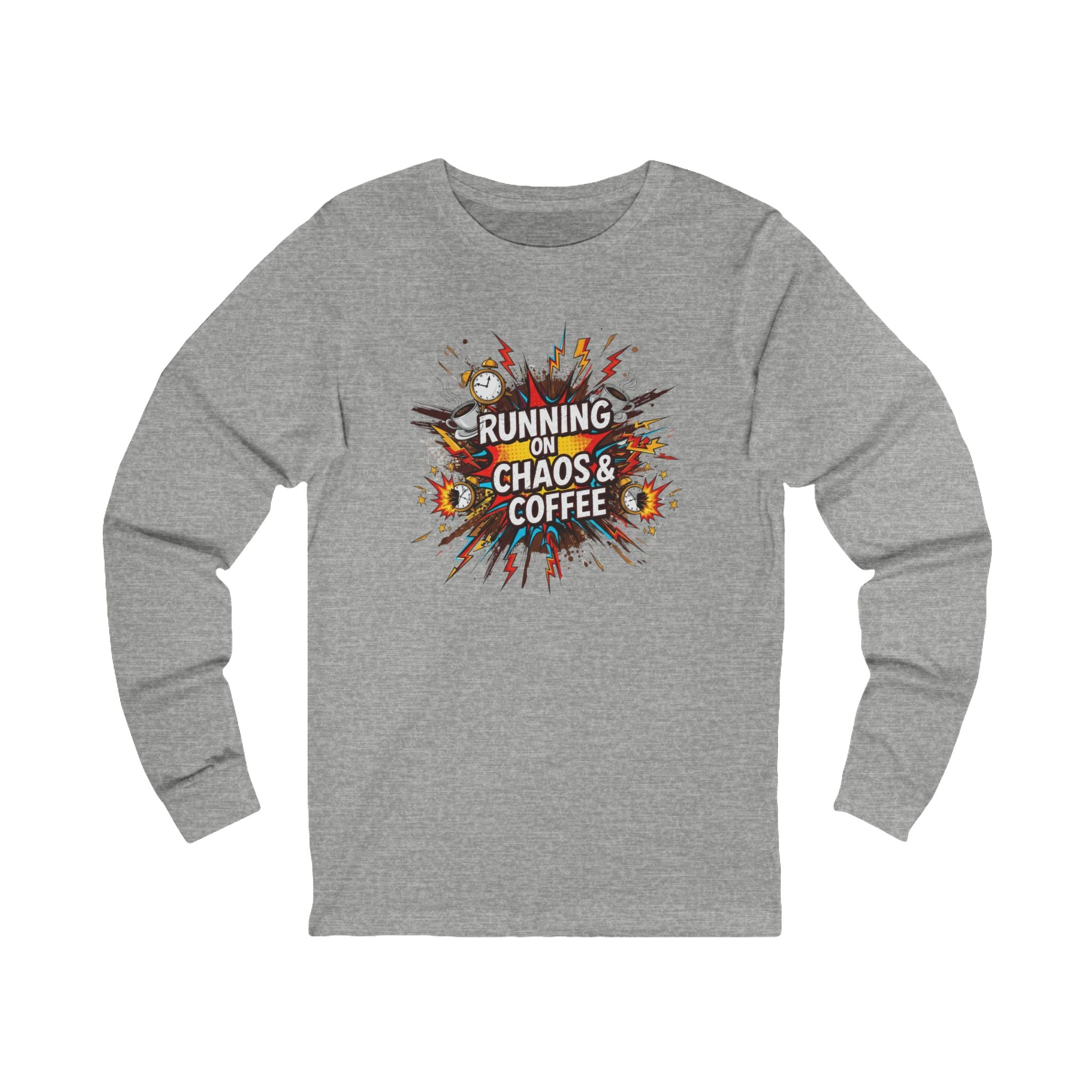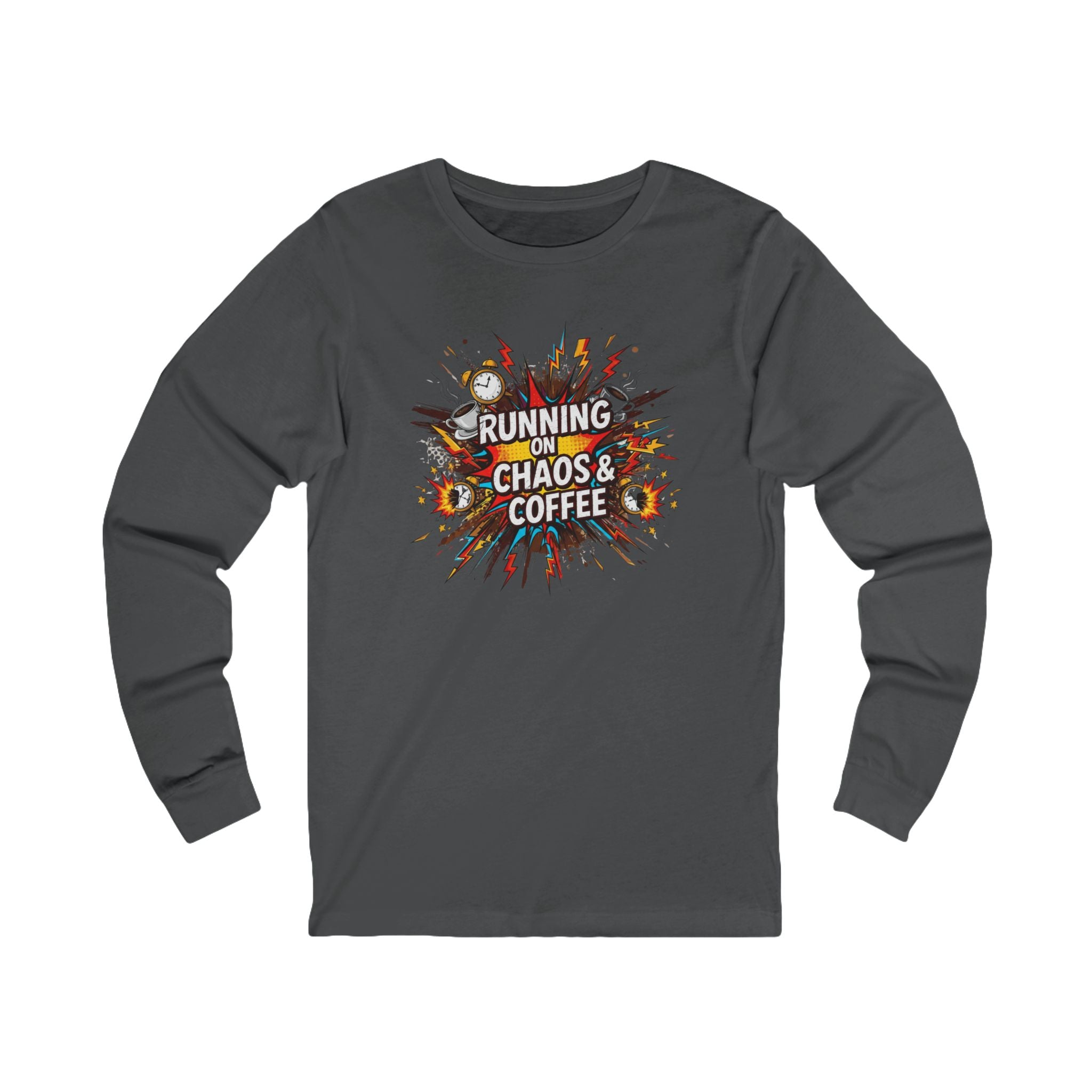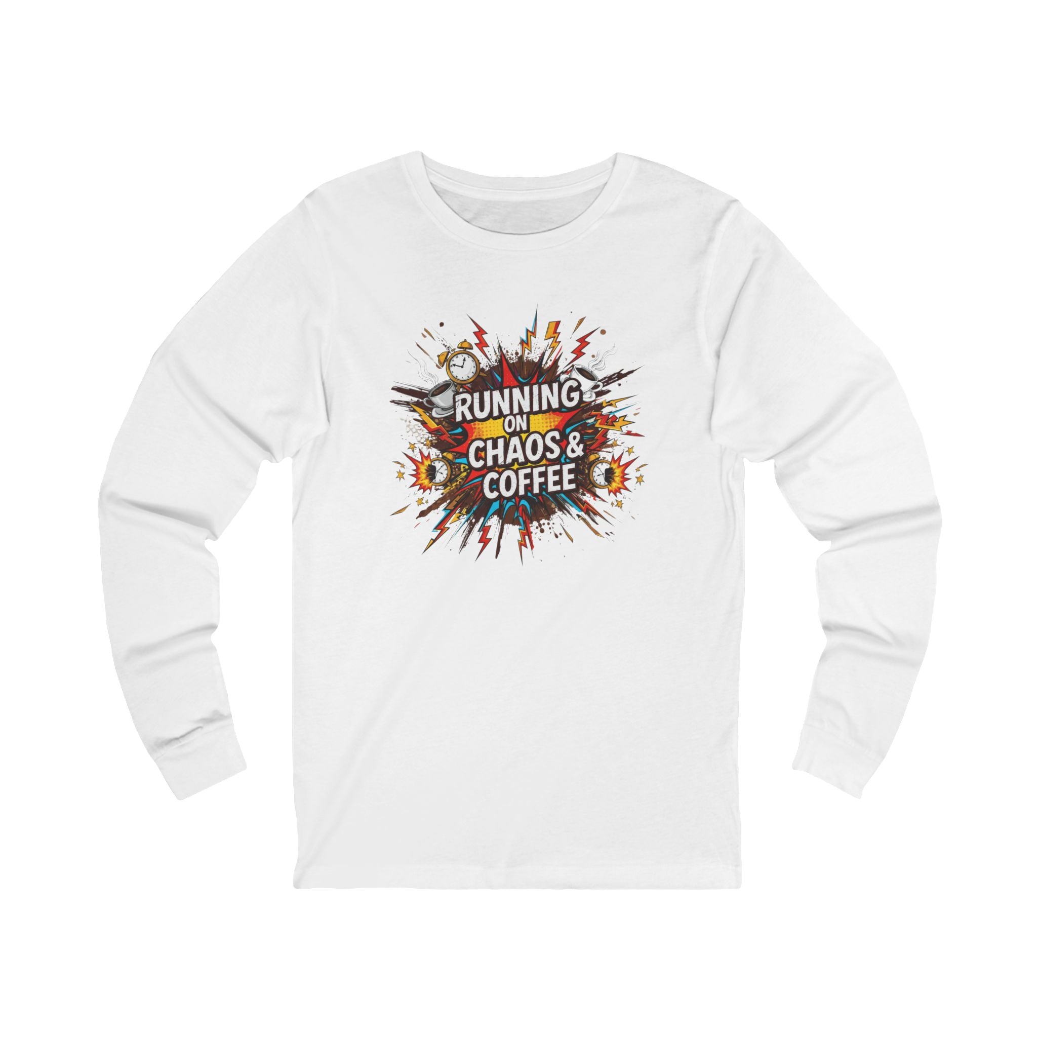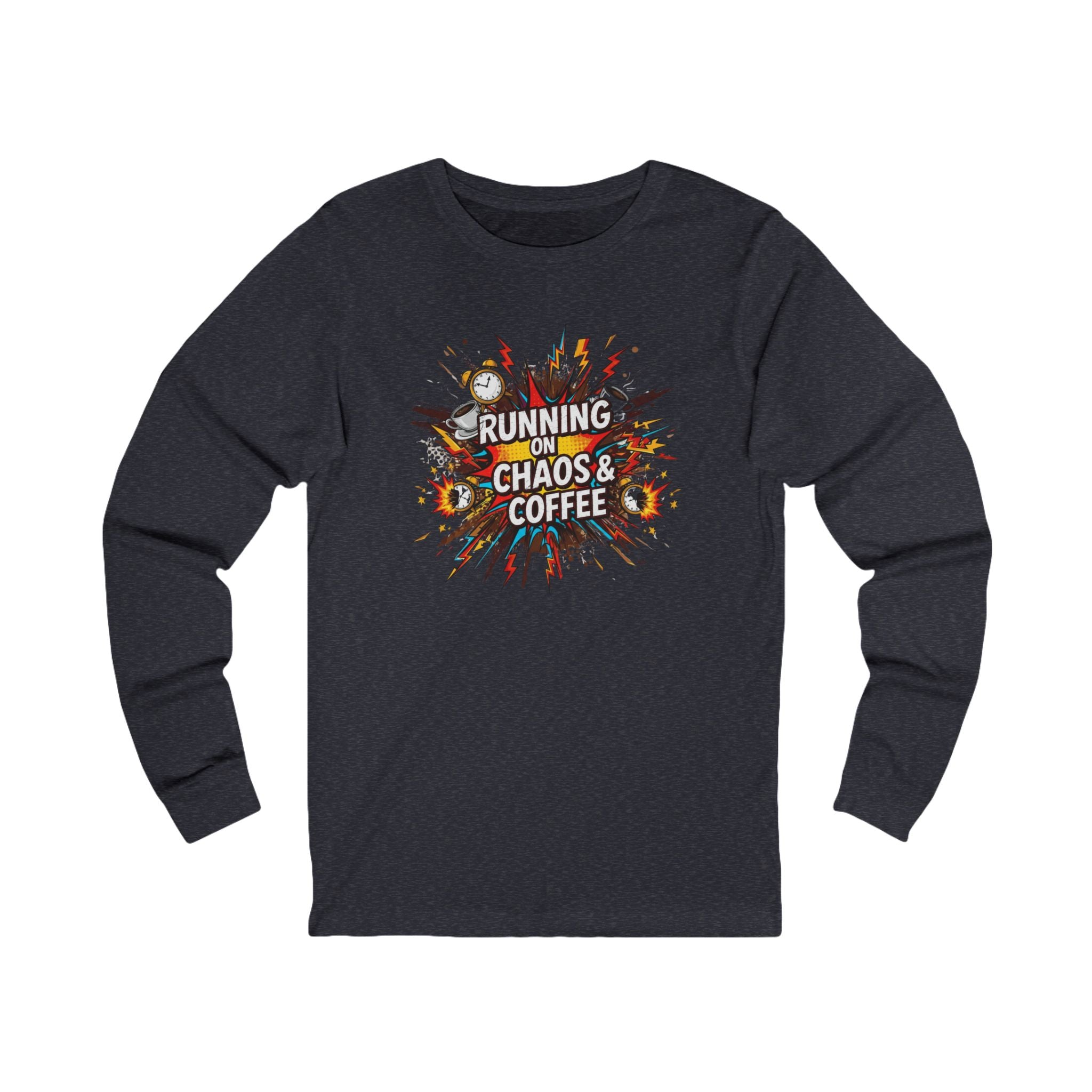 Celebrate your passion for coffee and the thrill of daily chaos with this stylish Unisex Jersey Long Sleeve Tee. Crafted from soft, lightweight fabric, this tee offers a comfortable fit perfect for everyday wear. Whether you’re lounging at home, grabbing coffee with friends, or running errands, it adds a playful touch to your outfit. Ideal for coffee enthusiasts and those who embrace life's ups and downs, it makes a great gift for birthdays, holidays, or just because. Show off your fun side on occasions like National Coffee Day or any casual gathering!